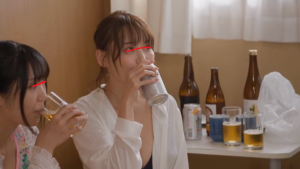 彼女たちは “暑いから” と水着のまま部屋でくつろぎ、しばらく酒を片手に談笑していた。
