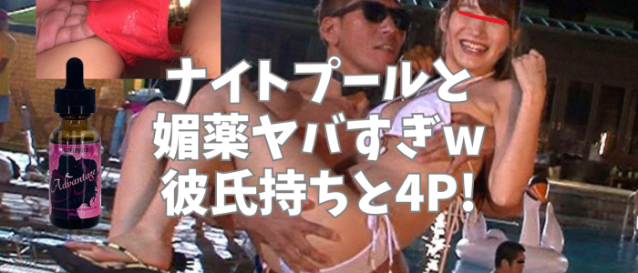 ナイトプールは女だらけ。同年代の彼氏持ちの女2人、巨乳とスレンダー美女のパリピコンビに目をつけ、俺らはチャラ男を演じて見事にゲット。